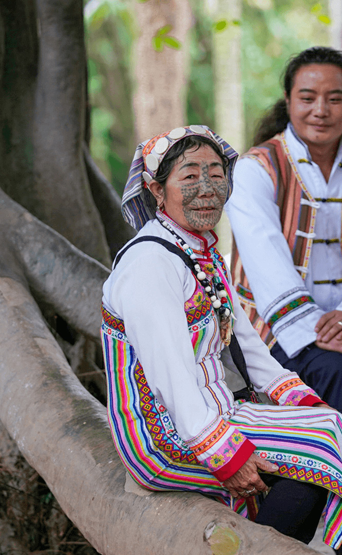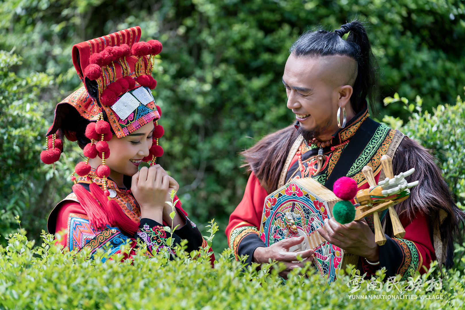 彝族在云南境內(nèi)約471萬人,是省內(nèi)人口最多、分布最廣的少數(shù)民族,主要聚居在金沙江、元江流域和哀牢山、無量山腹地。彝族是一個(gè)能歌善舞的民族,民間打歌、跳樂之風(fēng)盛行,大三弦、跌腳舞久負(fù)盛名。火把節(jié)是彝族最具特色的民族節(jié)日。彝族村占地50余畝,三虎浮雕墻與虎頭內(nèi)祖師形象表現(xiàn)了彝族虎鷹文化。太陽歷廣場圖騰柱上有太陽、虎、火和八卦圖形象,周圍環(huán)繞著10個(gè)朝向不同的月球造型,外圓周有12生肖石雕。依山而建的“...